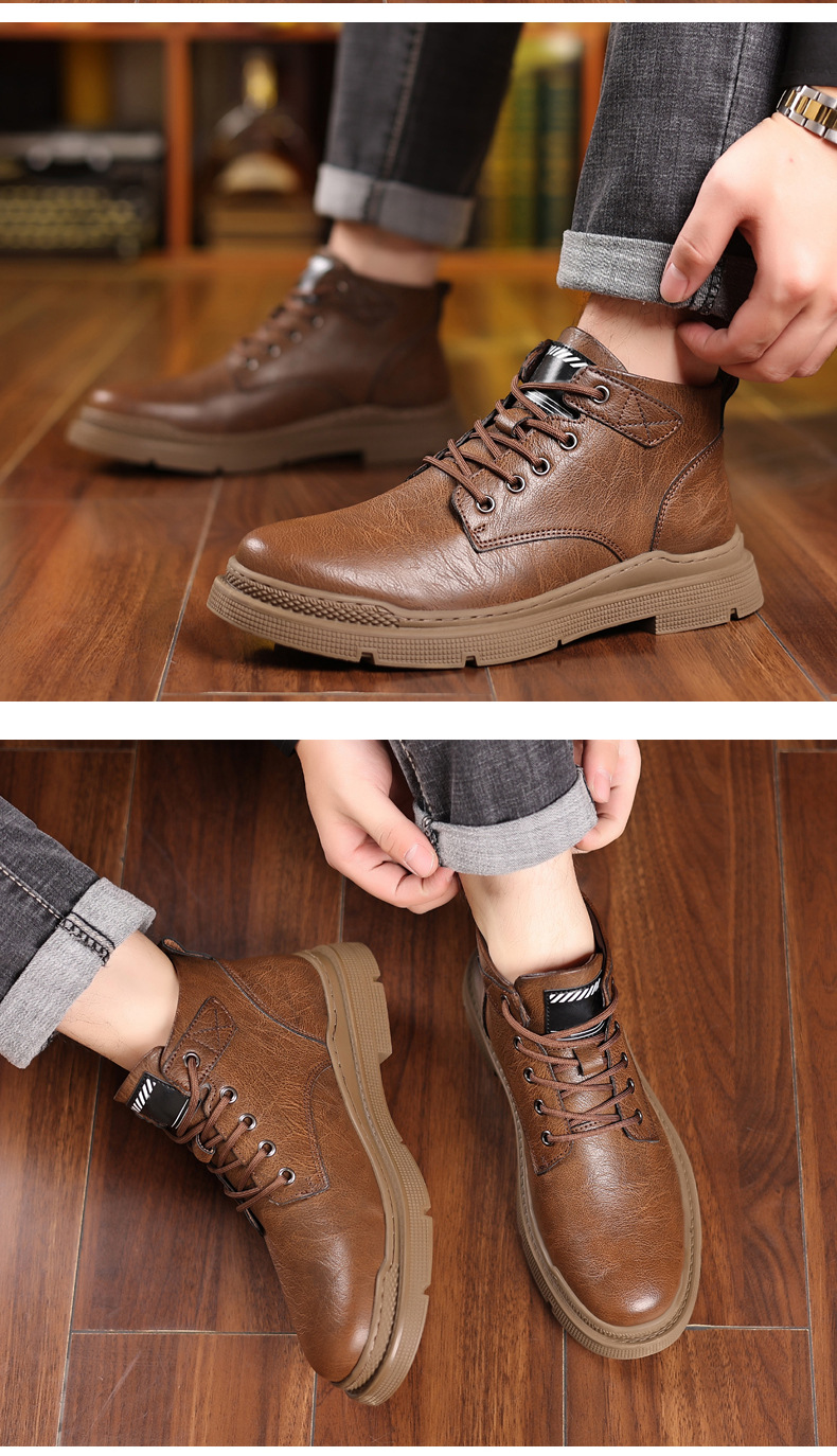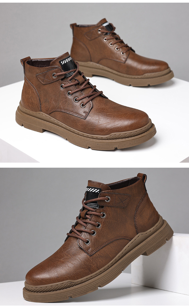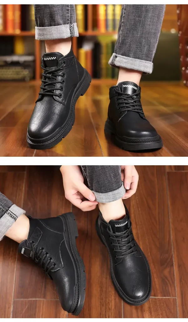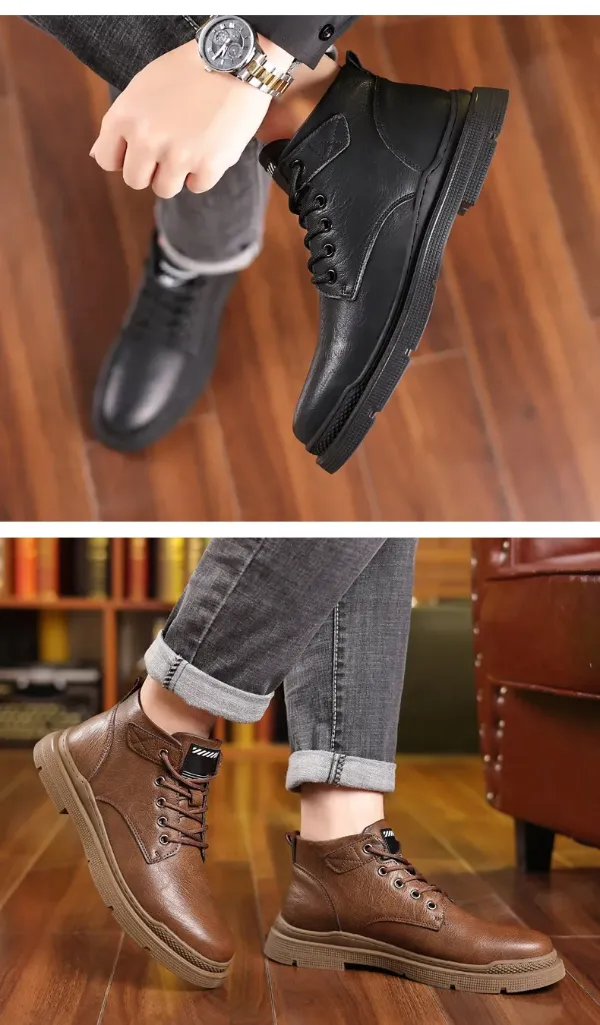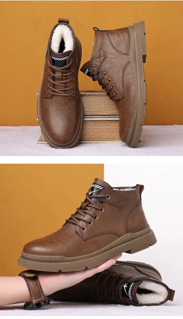 Men's Fleece Lace-Up Leather Waterproof British Boots
